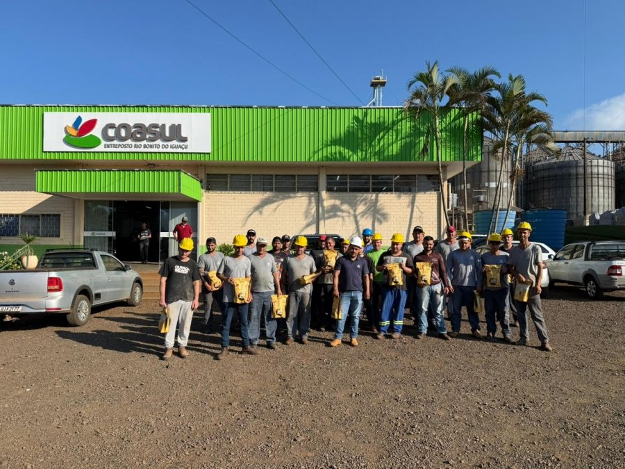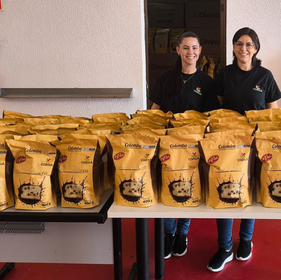 Colaboradores de todas as áreas da Coasul — entrepostos de grãos, postos de combustíveis, supermercados, abatedouro e fábricas de rações — receberam, nesta quinta-feira (2), uma colomba pascal em comemoração à Páscoa.